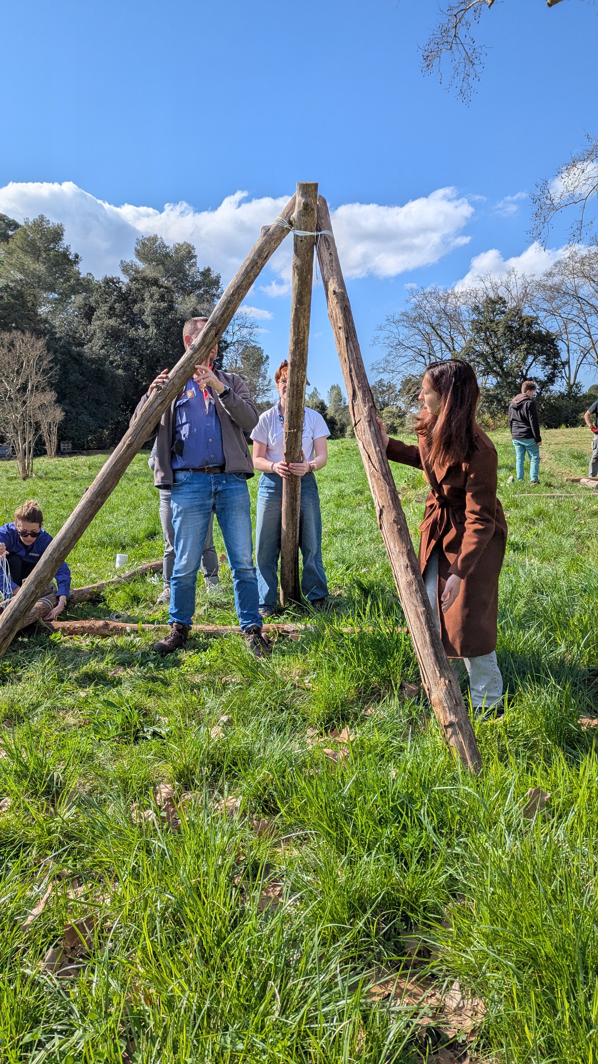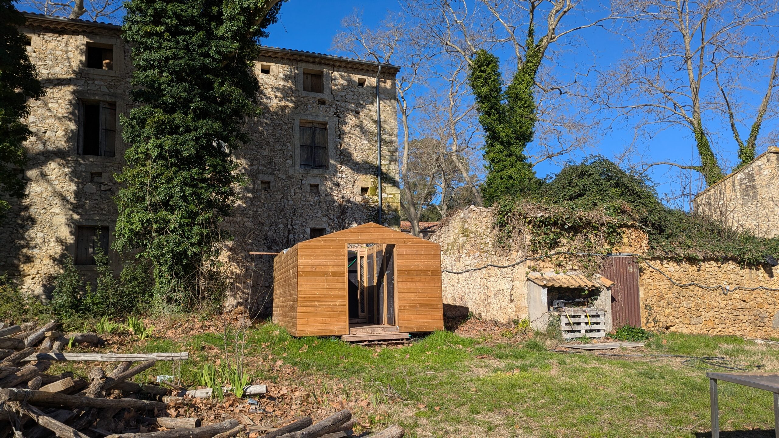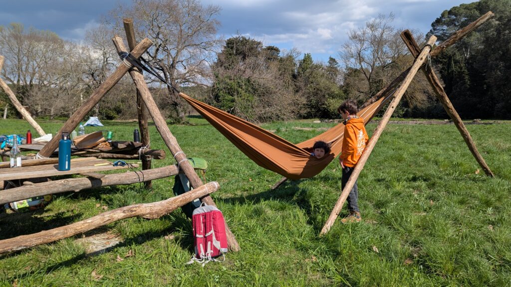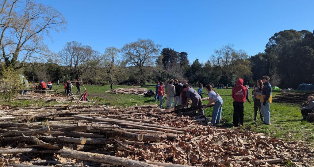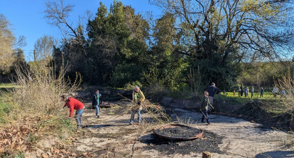 Le Dimanche 15 Mars, nous nous sommes réunis pour une matinée d’entretien du domaine. Répartition rapide en équipes autour d’un café et de viennoiseries, puis tout le monde s’est mis au travail sous un beau soleil: débroussaillage, tri des perches ou bricolage, il y en avait pour toutes les compétences.